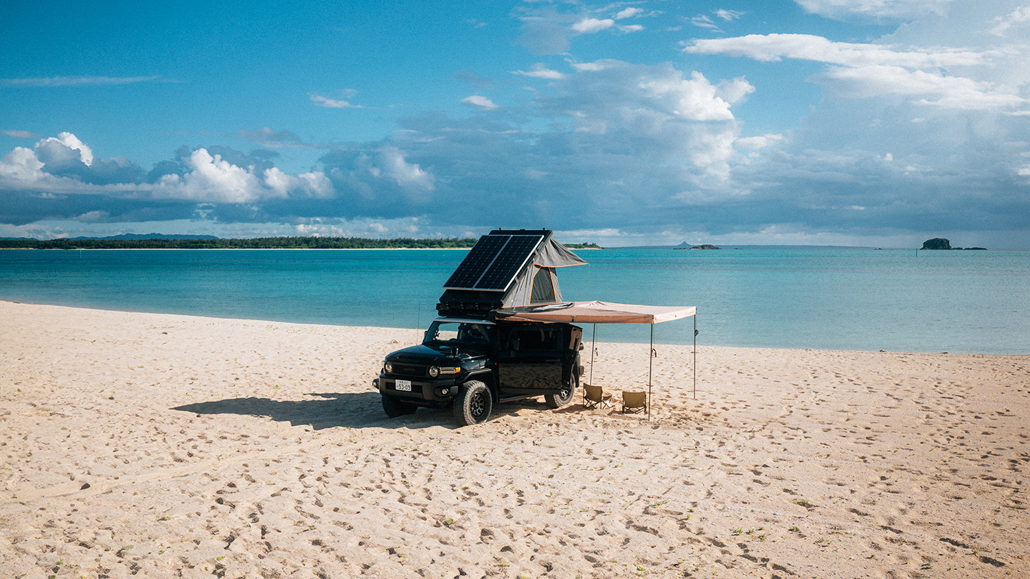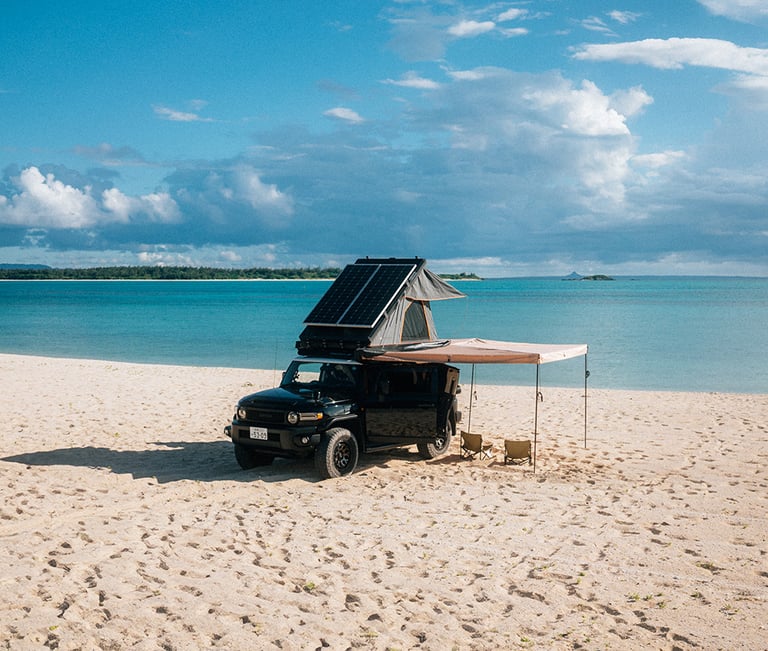 Embark on an unforgettable Okinawa adventure with Evertrail's FJ Cruiser camping car. Designed with campers in mind, this rugged yet stylish cruiser is your perfect companion for exploring the great outdoors. Experience the ultimate in camping comfort with our spacious rooftop tent, ensuring a cozy night's sleep under the stars.